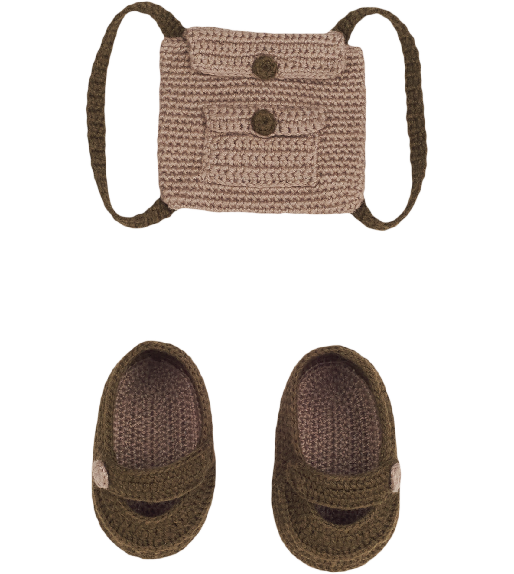 Nico is dressed in beautifully hand-embroidered clothing, with each detail carefully stitched to reflect true craftsmanship. His removable outfit encourages imaginative play, while his delightful backpack opens to hold tiny treasures, adding a playful and interactive touch that little ones will love.
