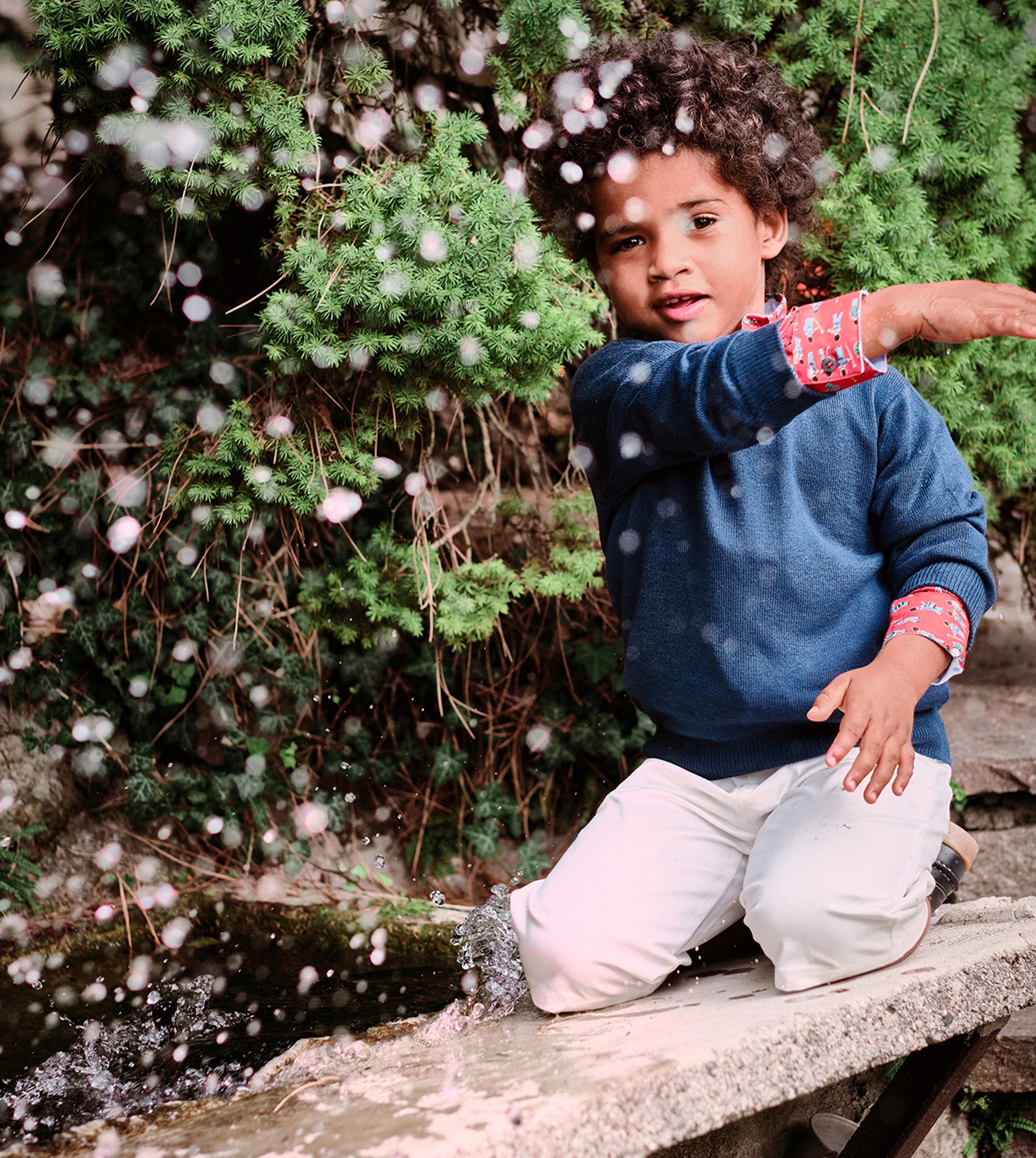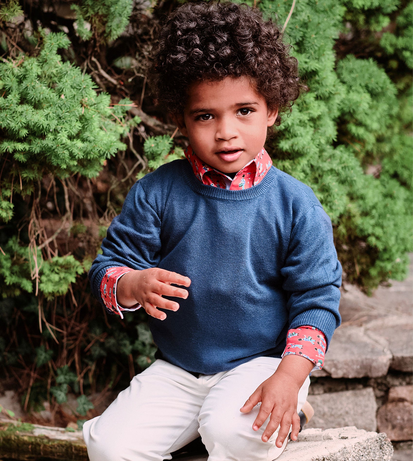 Crafted from super-soft cotton, by our trusted artisans, with love and passion. This lightweight boy jumper can be used in Fall or Spring or as a layer in Winter. 70% Pima Cotton and 30% Modal. Contrast internal colour trim on collar, cuffs, and waist.