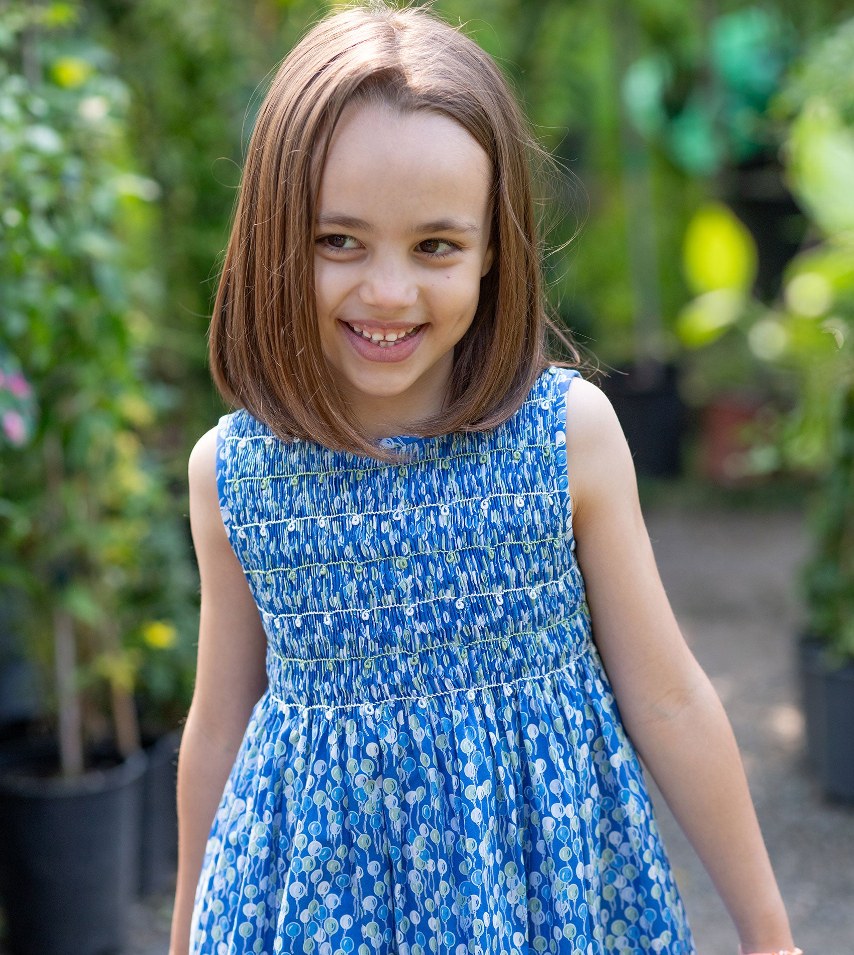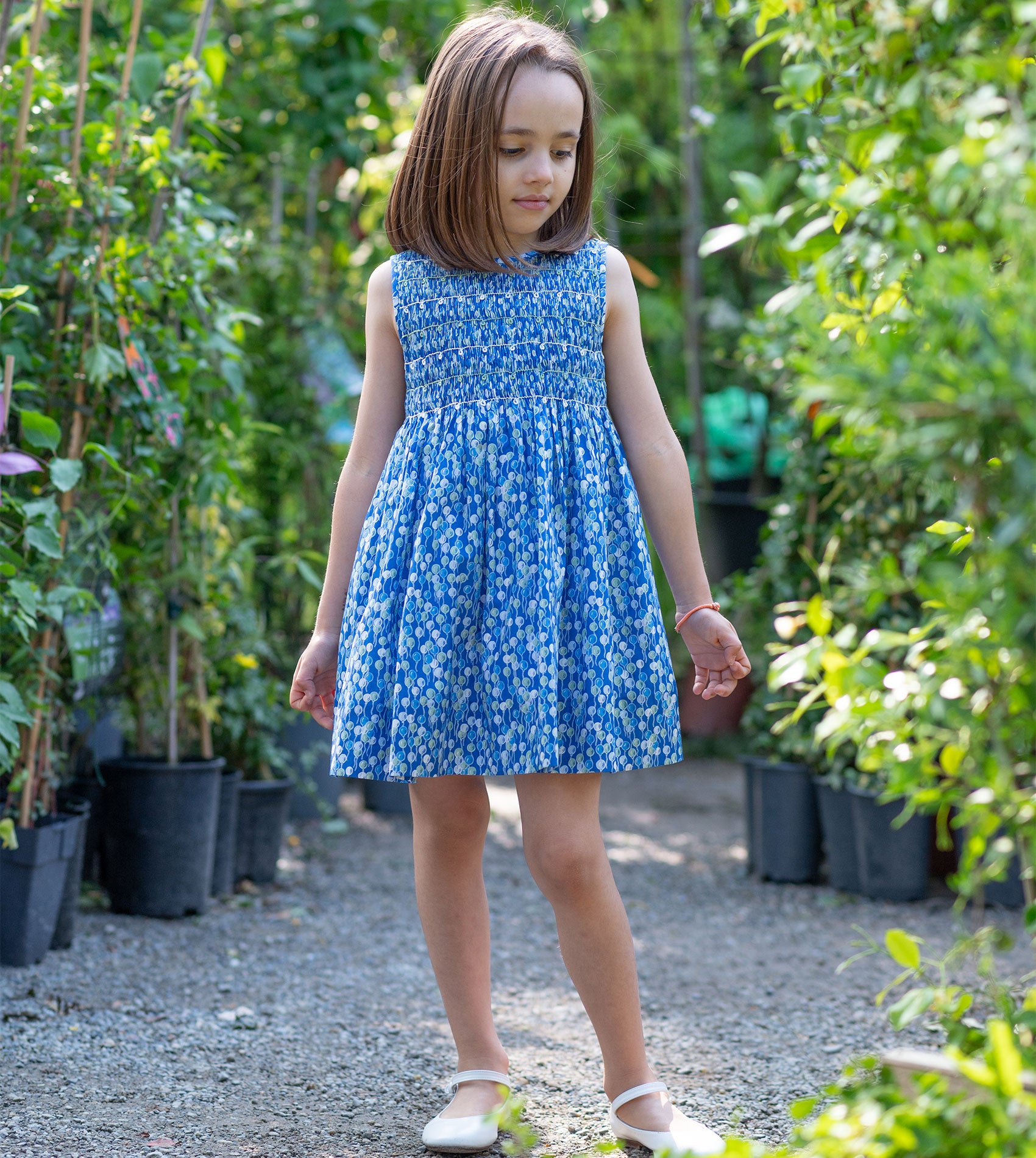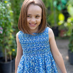 The Alexandra Dress is a beautifully crafted piece designed to celebrate timeless elegance and thoughtful details. Made from 100% cotton for a soft and breathable feel, this dress features exquisite hand-smocking and a delicate all-over print in vibrant blue tones. The sleeveless design ensures comfort, while the full skirt allows graceful movement.