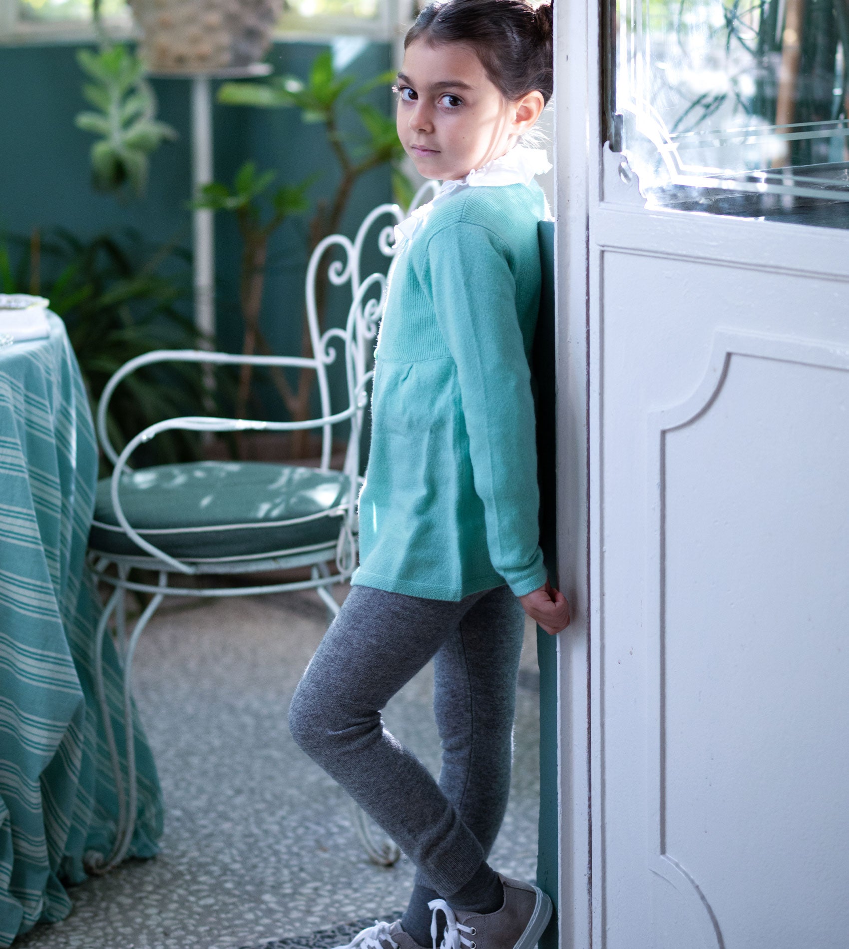 The ideal cardigan for all seasons and all occasions. Wear it over a blouse to enhance the design of this cashmere cardigan and finish the look with our cashmere leggings and suede boots.