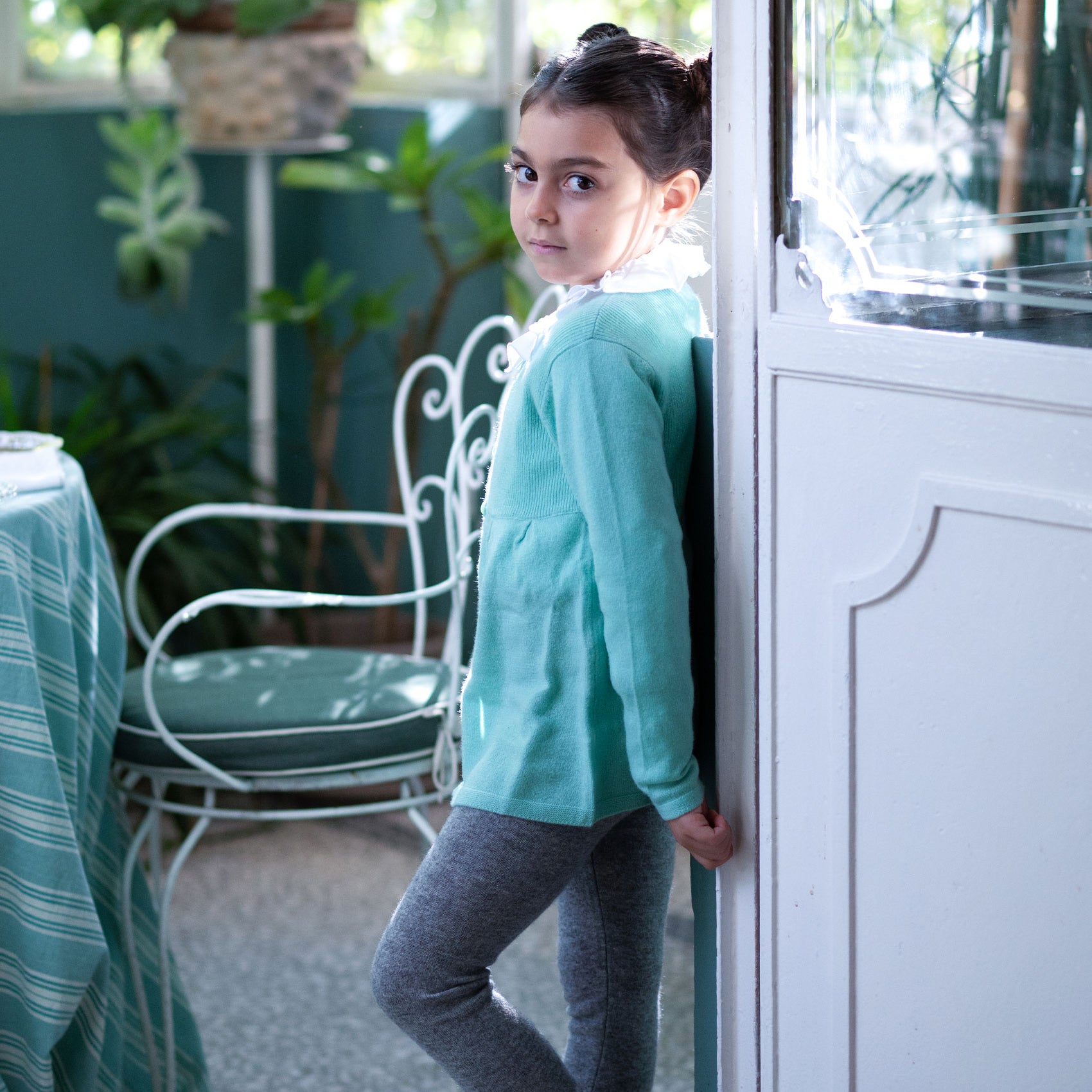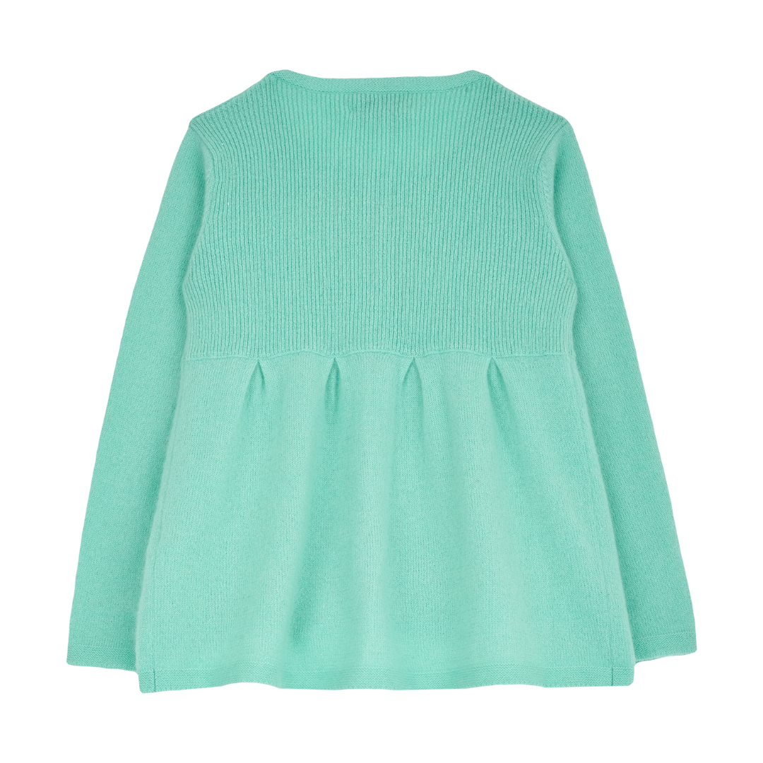 This colourful girl cardigan is made from 100% lightweight cashmere to ensure that your little girl feels happy and lively whilst also being wrapped in soft, luxurious comfort. This particular design includes a gathered waist, long sleeves, and a round neck.