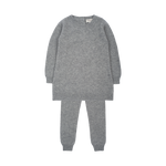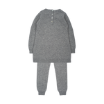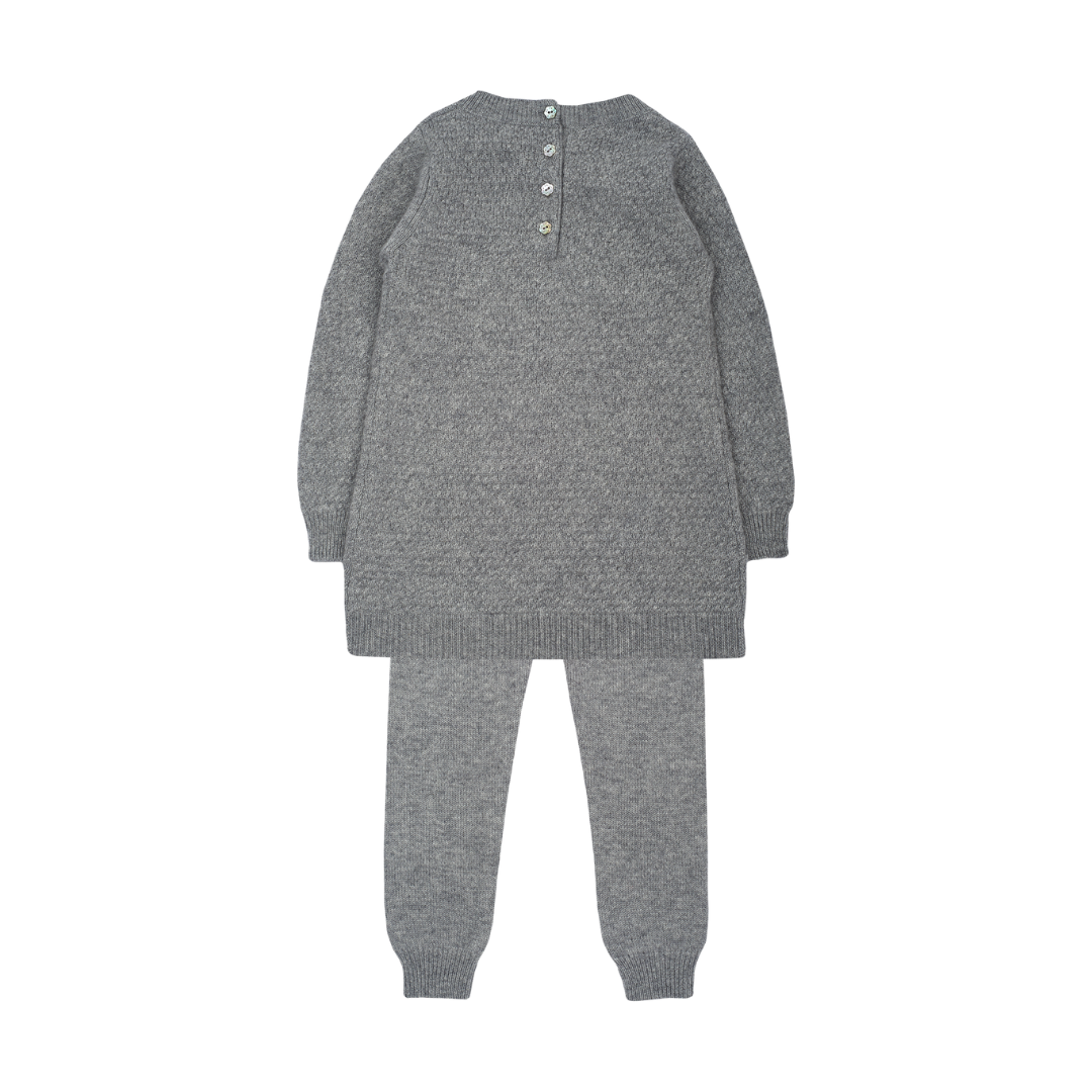 A complete set made from 100% cashmere which includes a diagonal stitch A-line dress with long sleeves, a round neck, button fastening and a ribbed hem. Wear over the elasticated waistband leggings for added warmth.