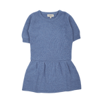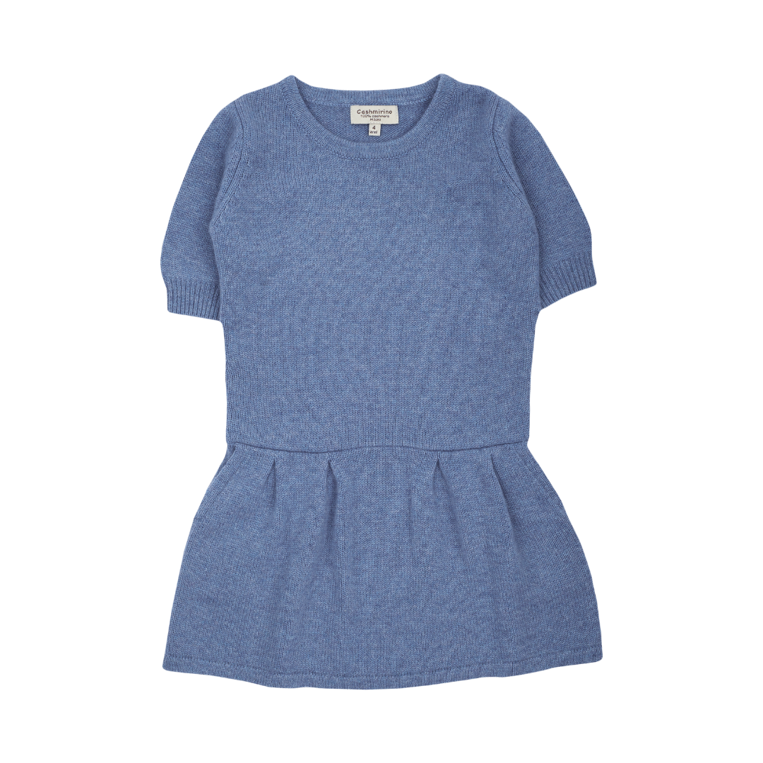 A cashmere dress featuring a drop waist with a round neck and short sleeves.