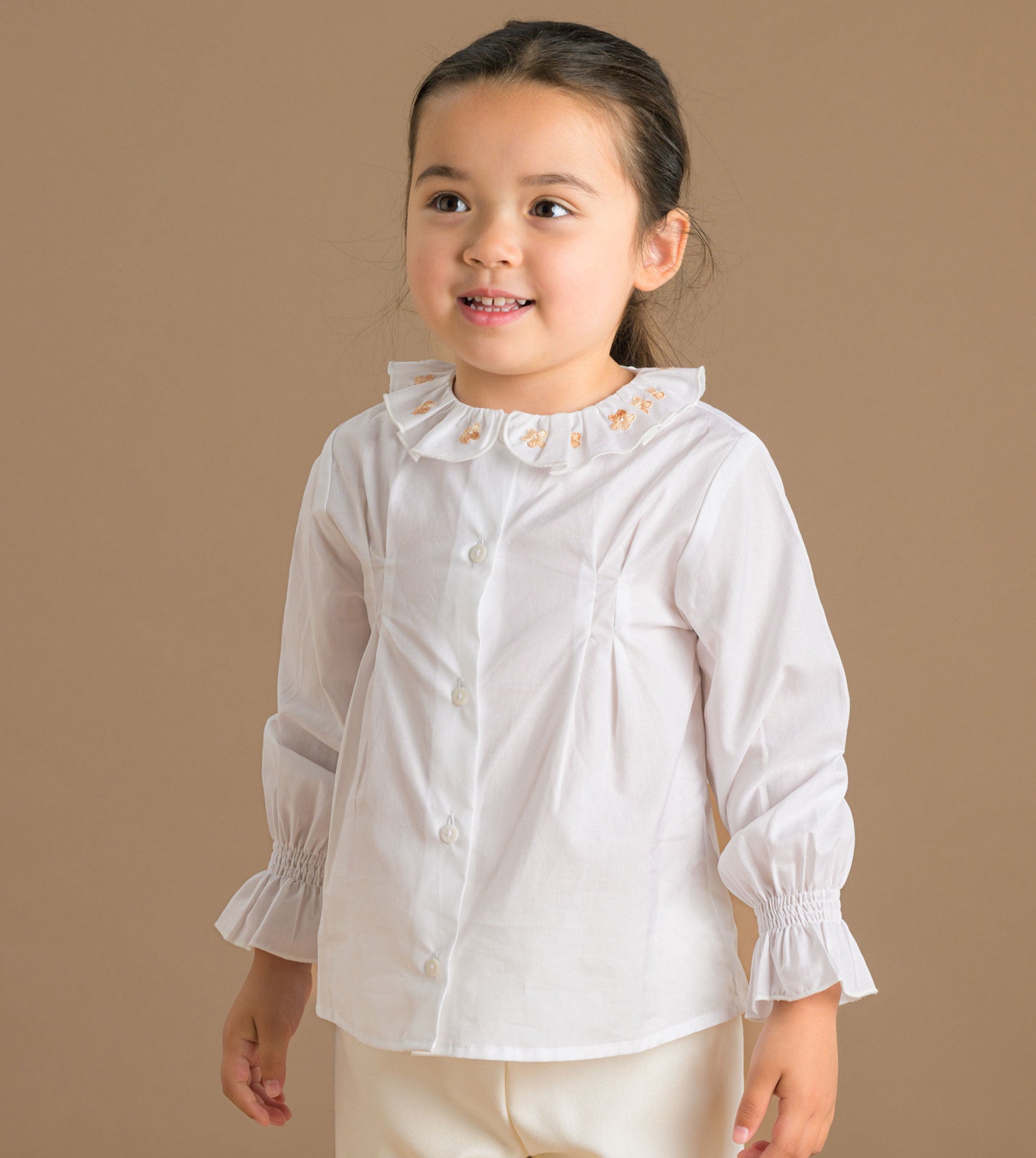 The Clementine Blouse is crafted from 100% soft, breathable cotton, offering comfort and versatility for any occasion. Featuring hand-embroidered floral details on the collar, it brings a touch of artisanal elegance to your wardrobe.