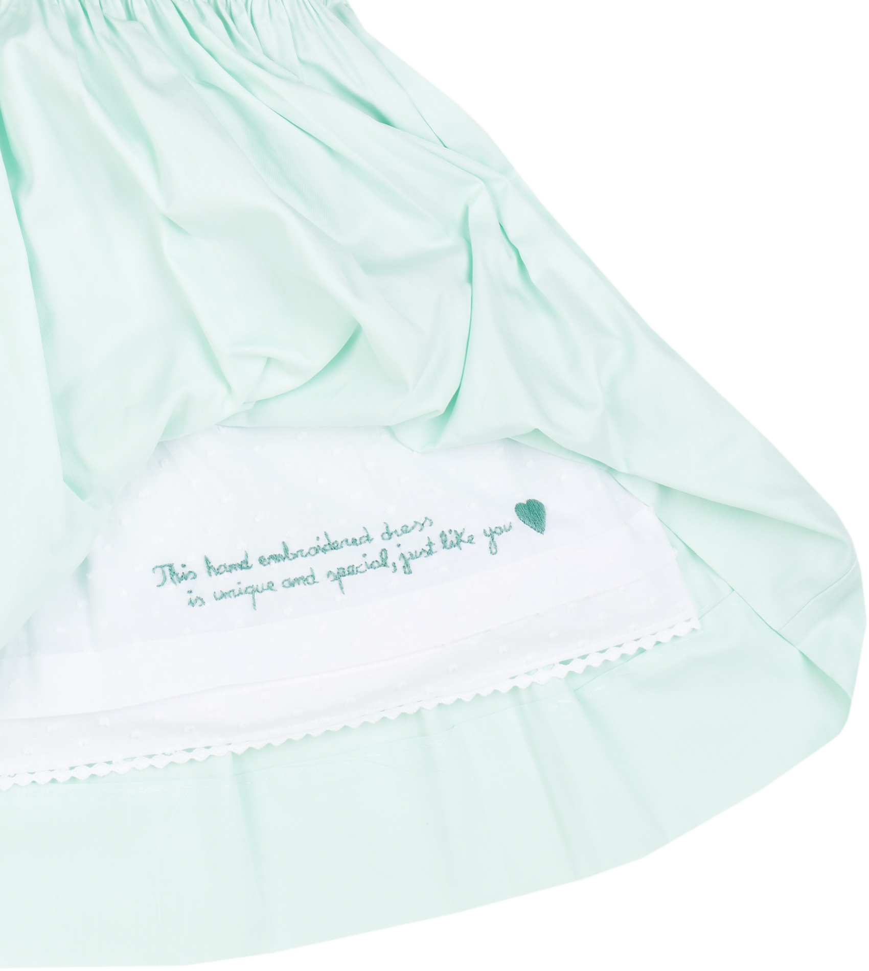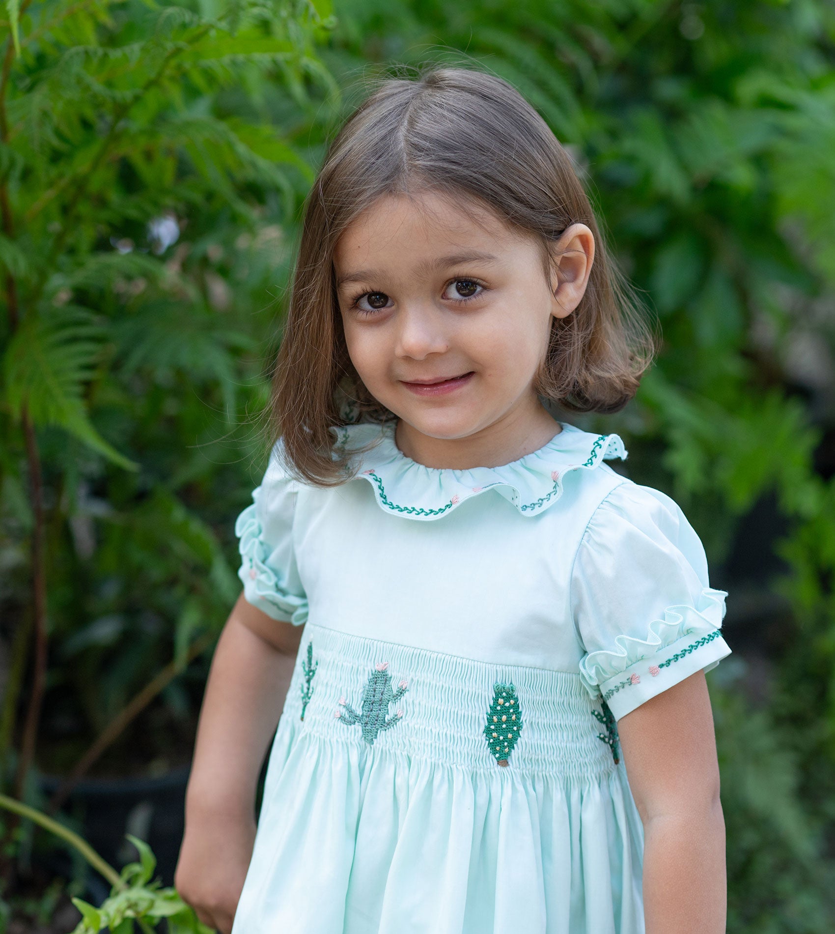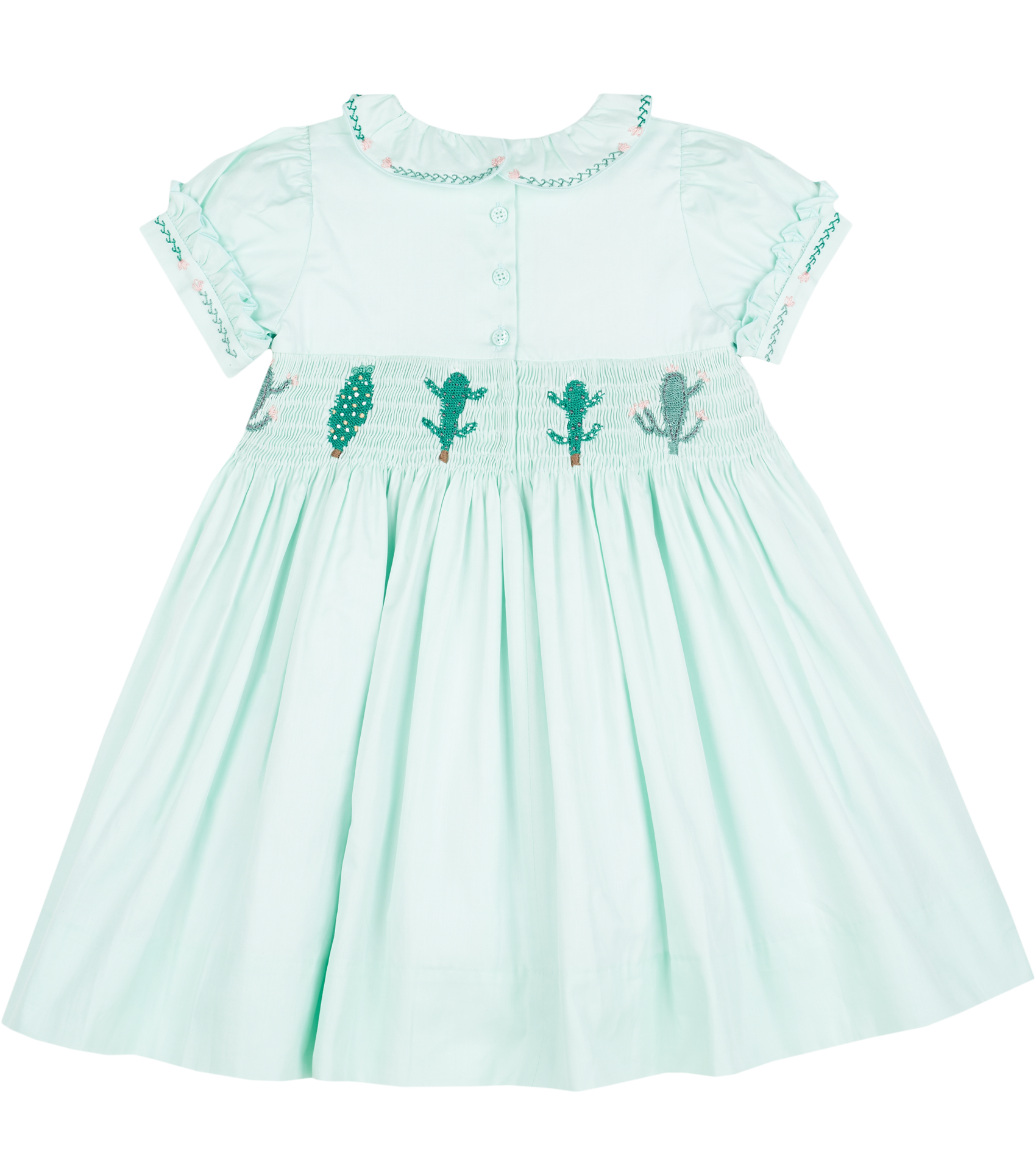 - Features an intricate embroidered cactus design at the waist, adding a playful and unique focal point to the dress.