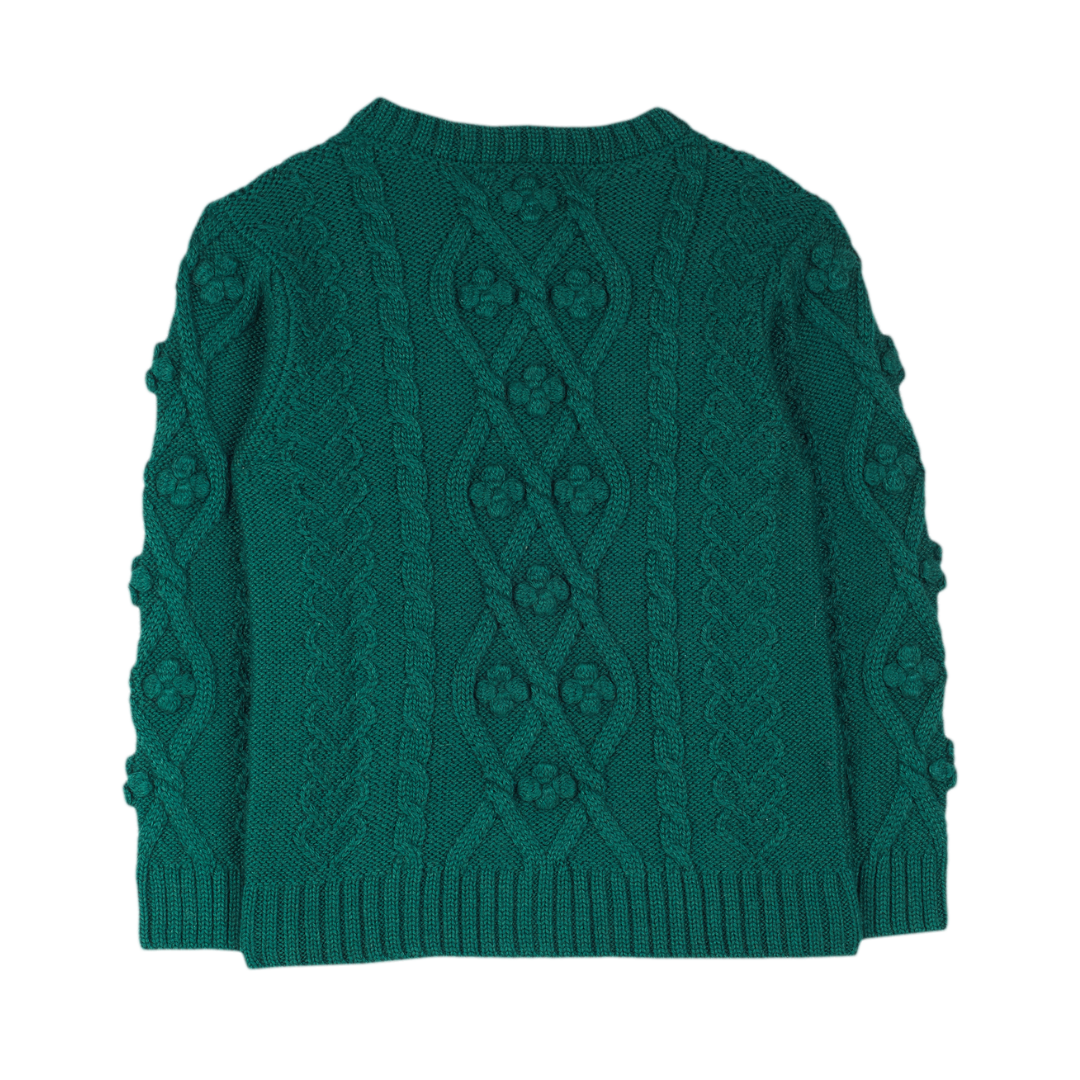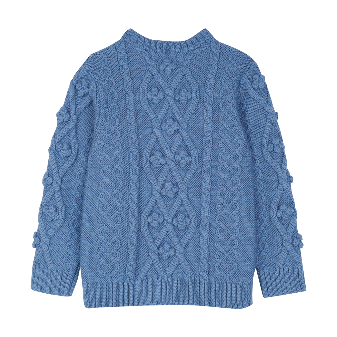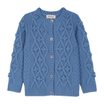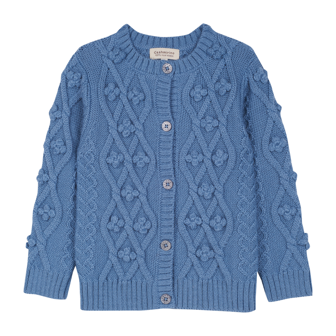 Bursting with details, our 100% Royal Alpaca Noelle cardigan will most definitely enhance your little girl's winter wardrobe. With our long sleeve Aran knit, we adore the assortment of diamond, rope and heart cable knit with bobble detailing on the front, back and sleeves. For an extra touch of refinement, it features a ribbed hem on the cuff, neck, and waist to create a snug feel. This cardigan opens at the front with our signature Cashmirino buttons. Perfect to pair with all your favourite dresses from this cooler season.