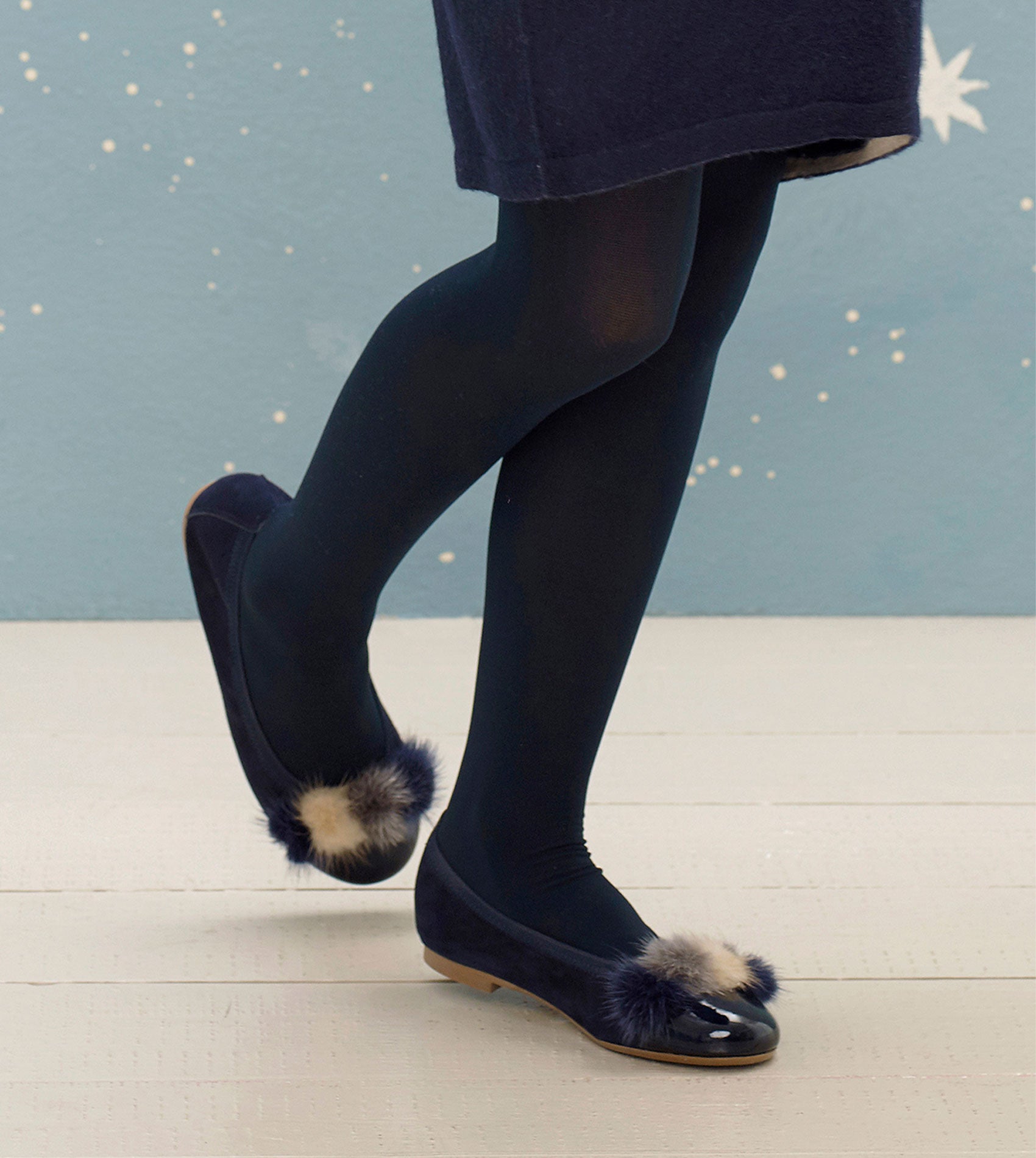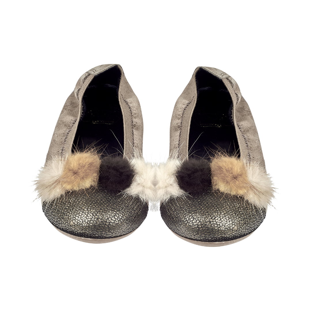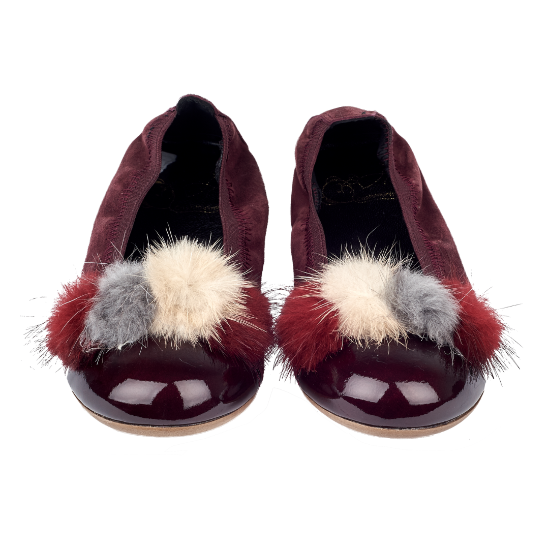 Mabel Girl – Suede Ballerinas with Multi-Coloured Pom-Poms