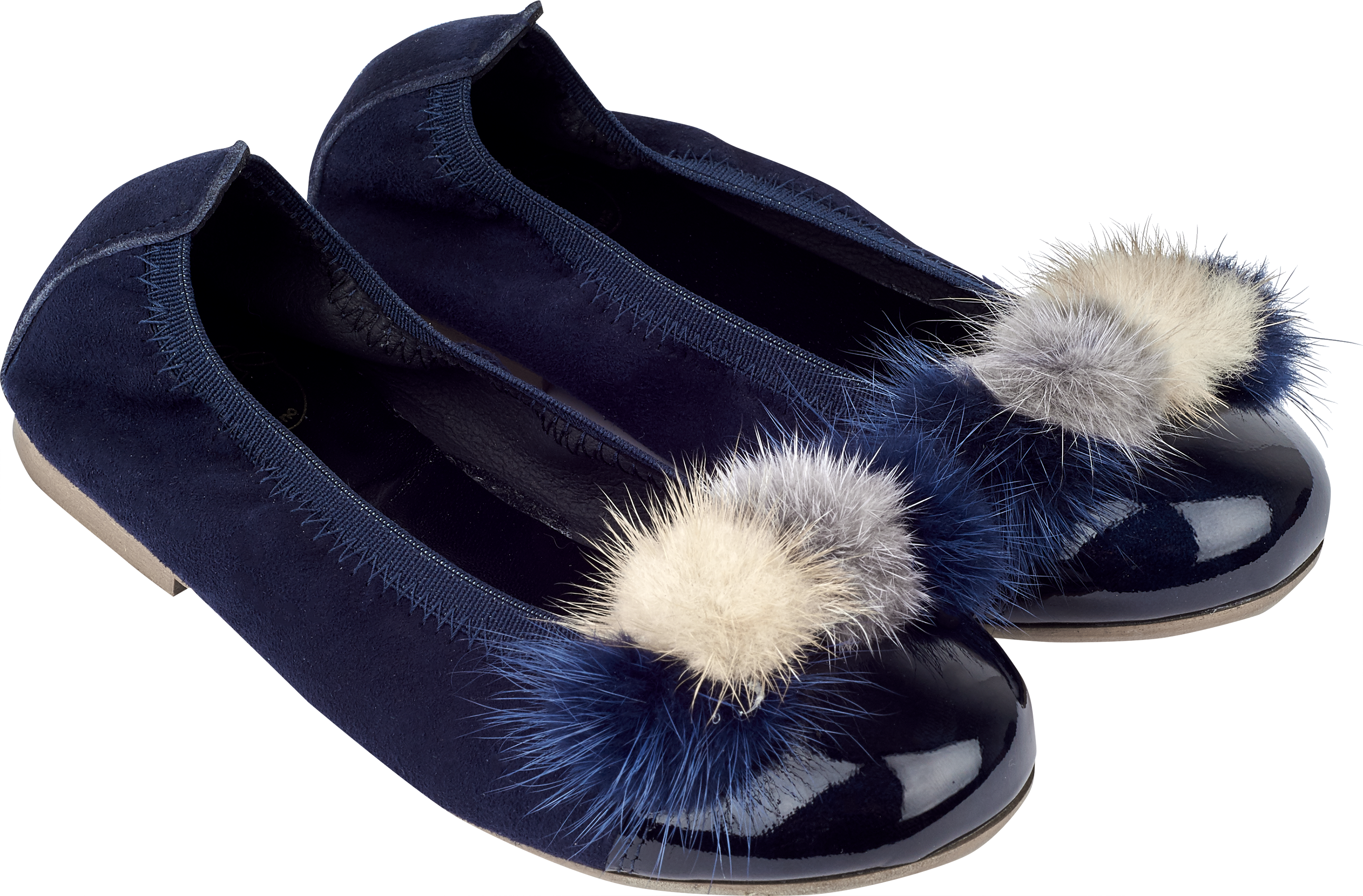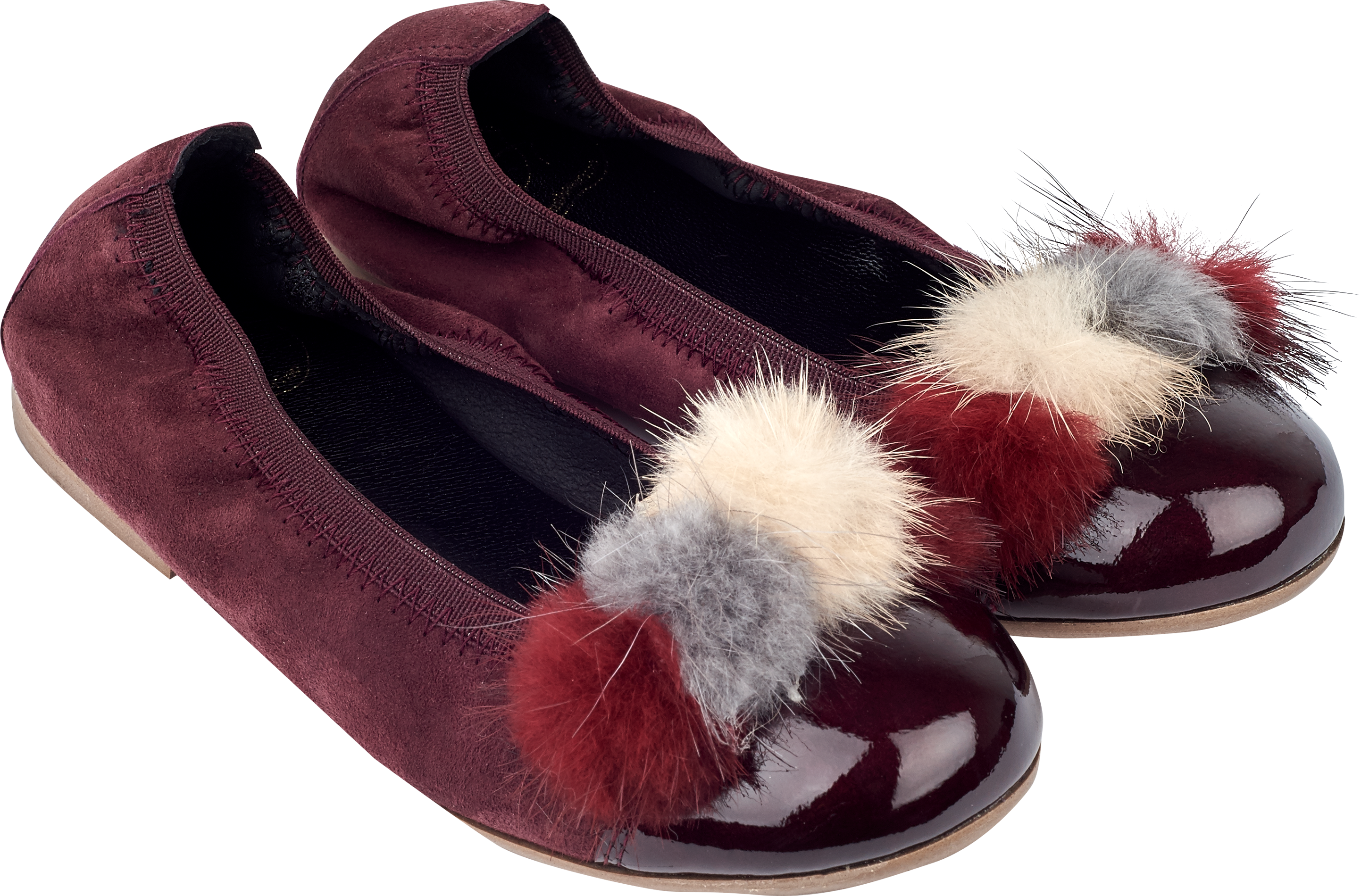 Playful and comfy, these suede ballerinas add a pop of colour to any outfit. Designed with a patent leather front, multi-coloured pom-pom accents, and an elasticated back for a flexible fit. Cushioned leather insoles and durable rubber soles ensure all-day comfort and support.