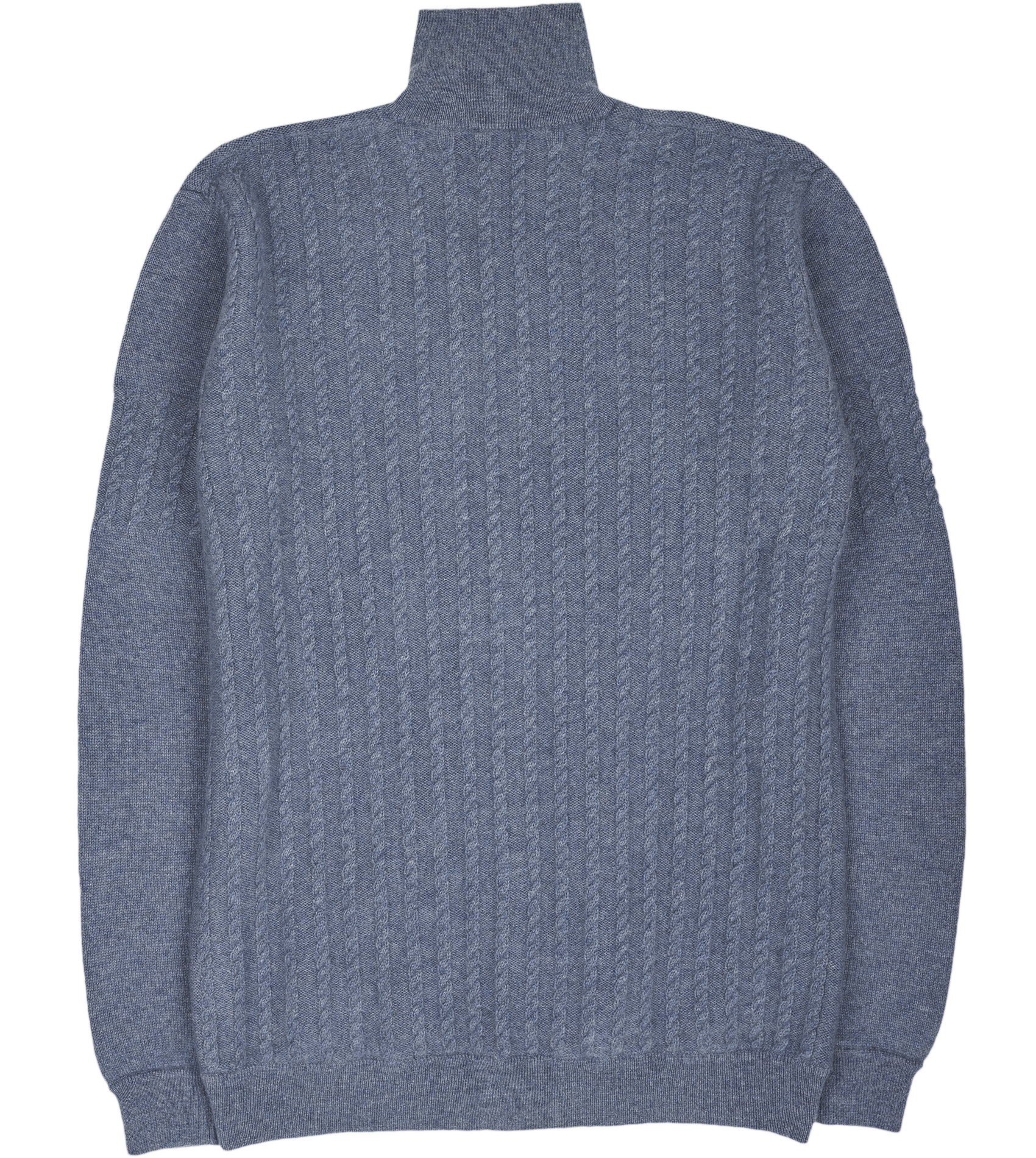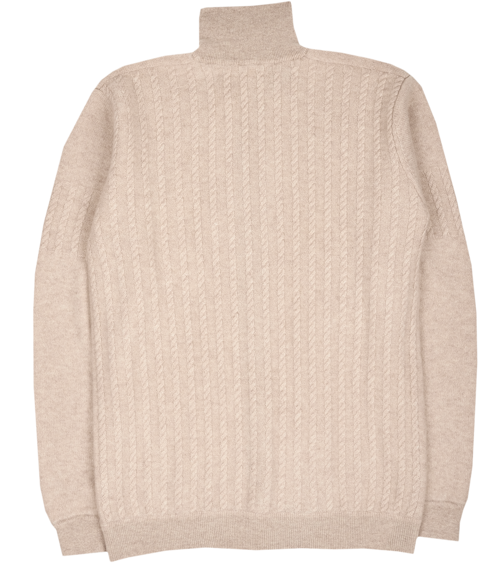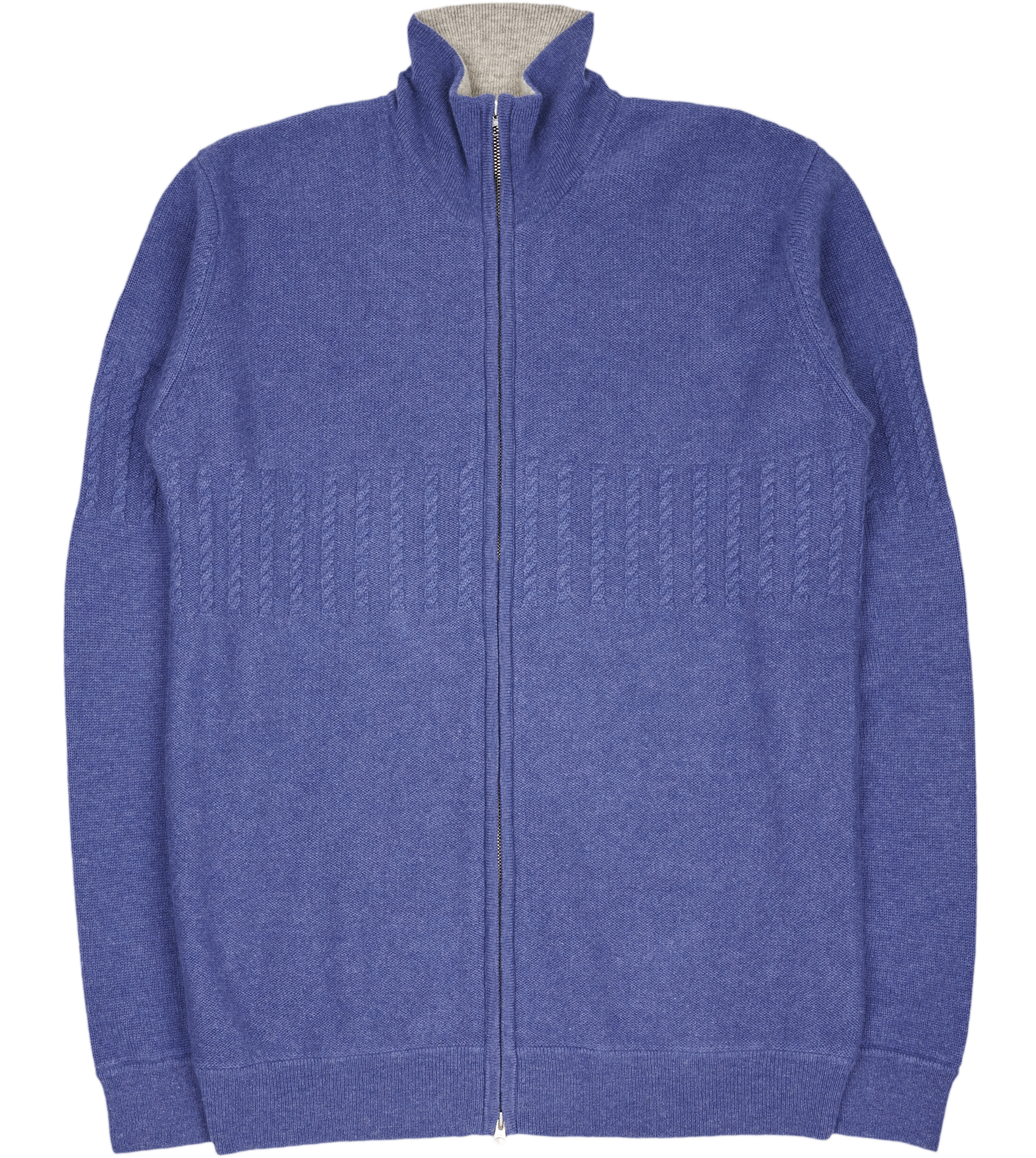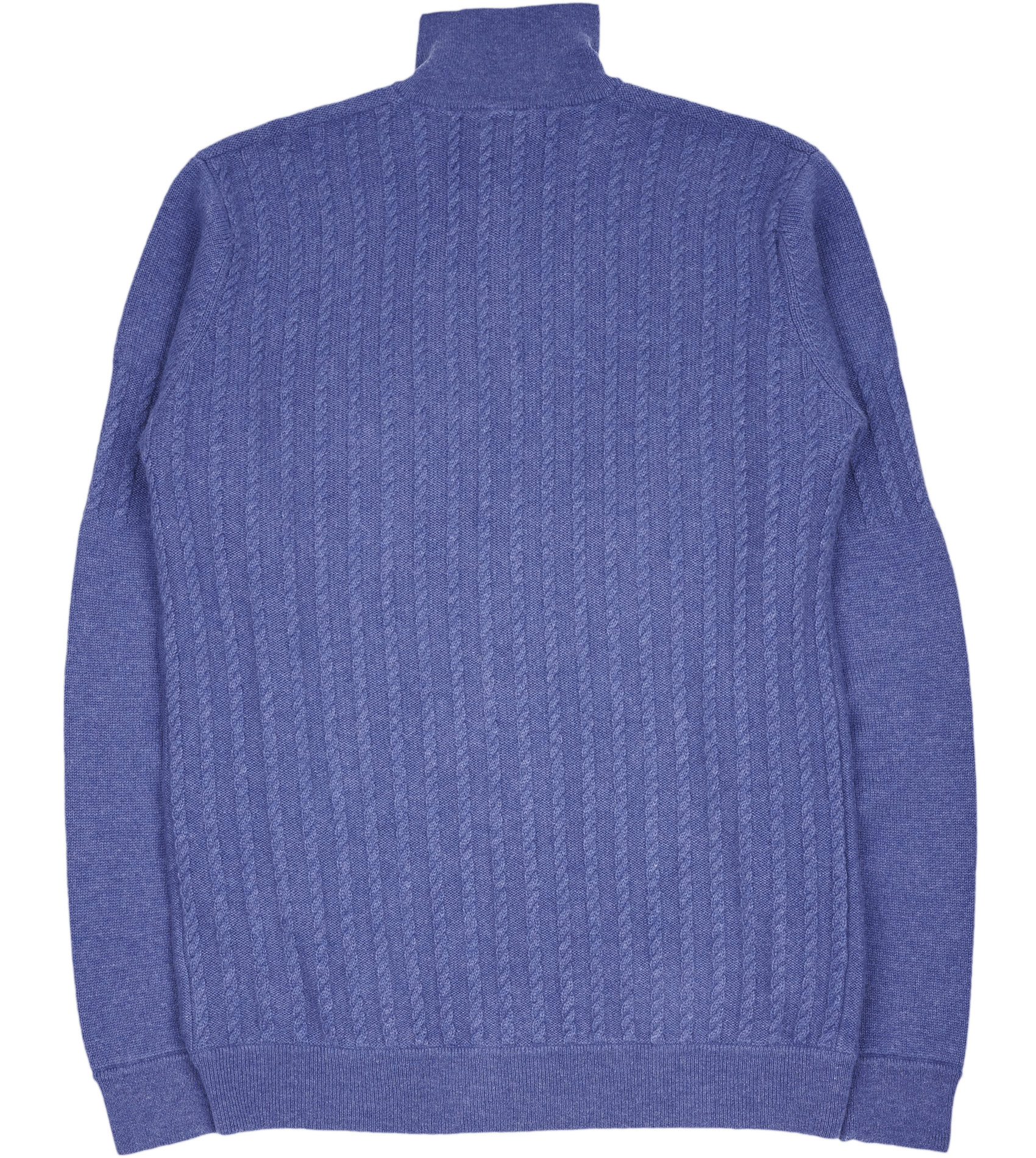 A classic high neck cardigan crafted from 100% pure cashmere, featuring elegant cable knit panels, long sleeves, a ribbed hem, and a practical zip fastening. Soft, breathable, and versatile, it’s perfect as a light jacket in warmer months or layered under coats on colder days, offering timeless style for any occasion.